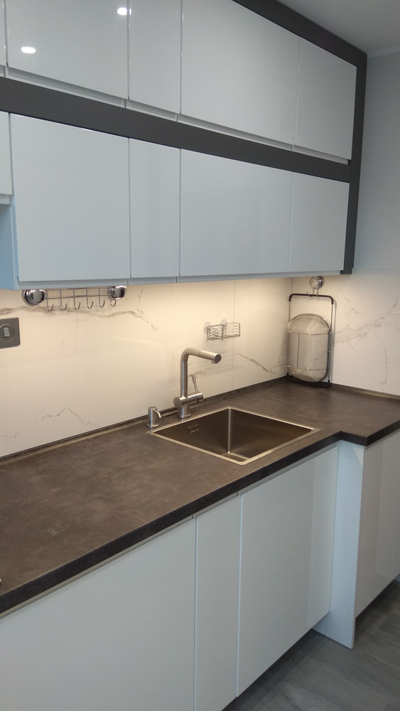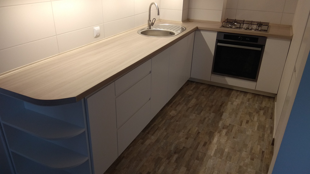 Do mebli kuchennych stosujemy blaty postformingowe o grubości 28 i 38 mm w ponad 200 kolorach i wzorach oraz blaty wykonane z marmurów, granitów i konglomeratów.