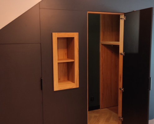 Funkcjonalne szafy wnękowe i zabudowy różnego rodzaju wnęk przeznaczone zarówno do sypialni, przedpokoi, garderób poddaszy oraz pomieszczeń biurowych i hotelowych.
